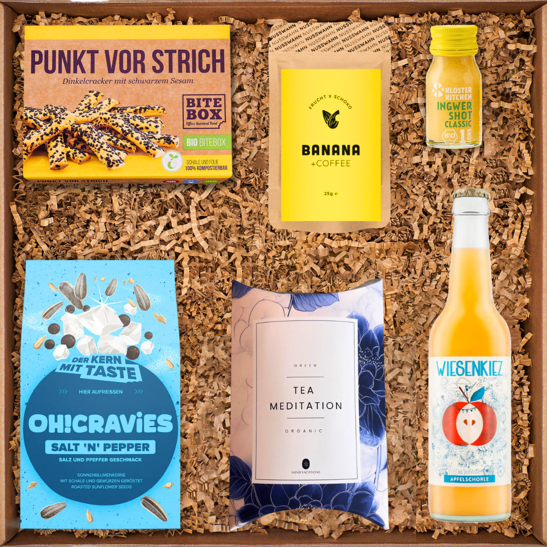 Wir bieten eine große Auswahl an Geschenkideen: von festlichen Weihnachtspräsenten für Mitarbeiter:innen über nachhaltige Snackboxen bis hin zu kreativen Kundengeschenken zu Weihnachten. Jede Geschenkbox ist so einzigartig wie dein Team – sorgfältig zusammengestellt, voller Genuss und immer mit dem Ziel, Freude zu bereiten.