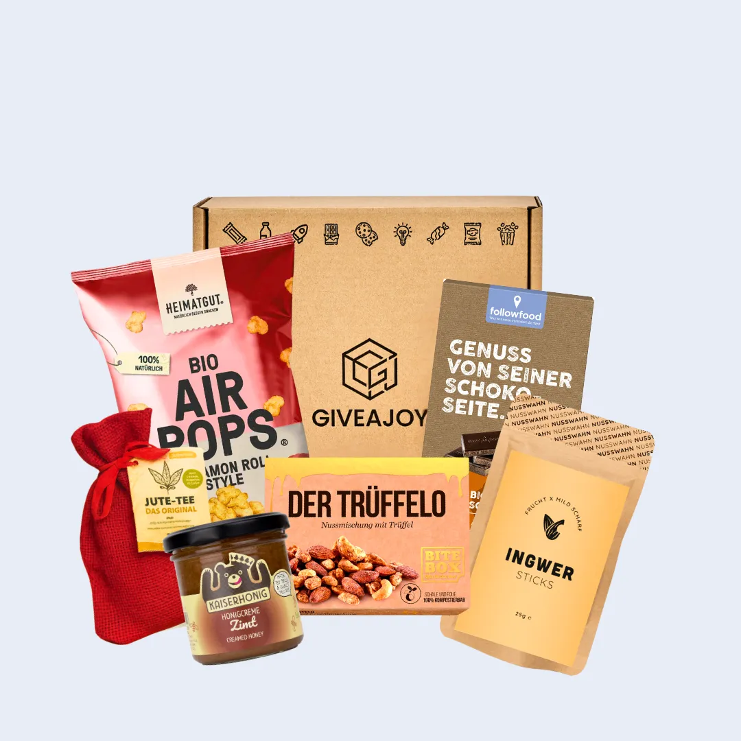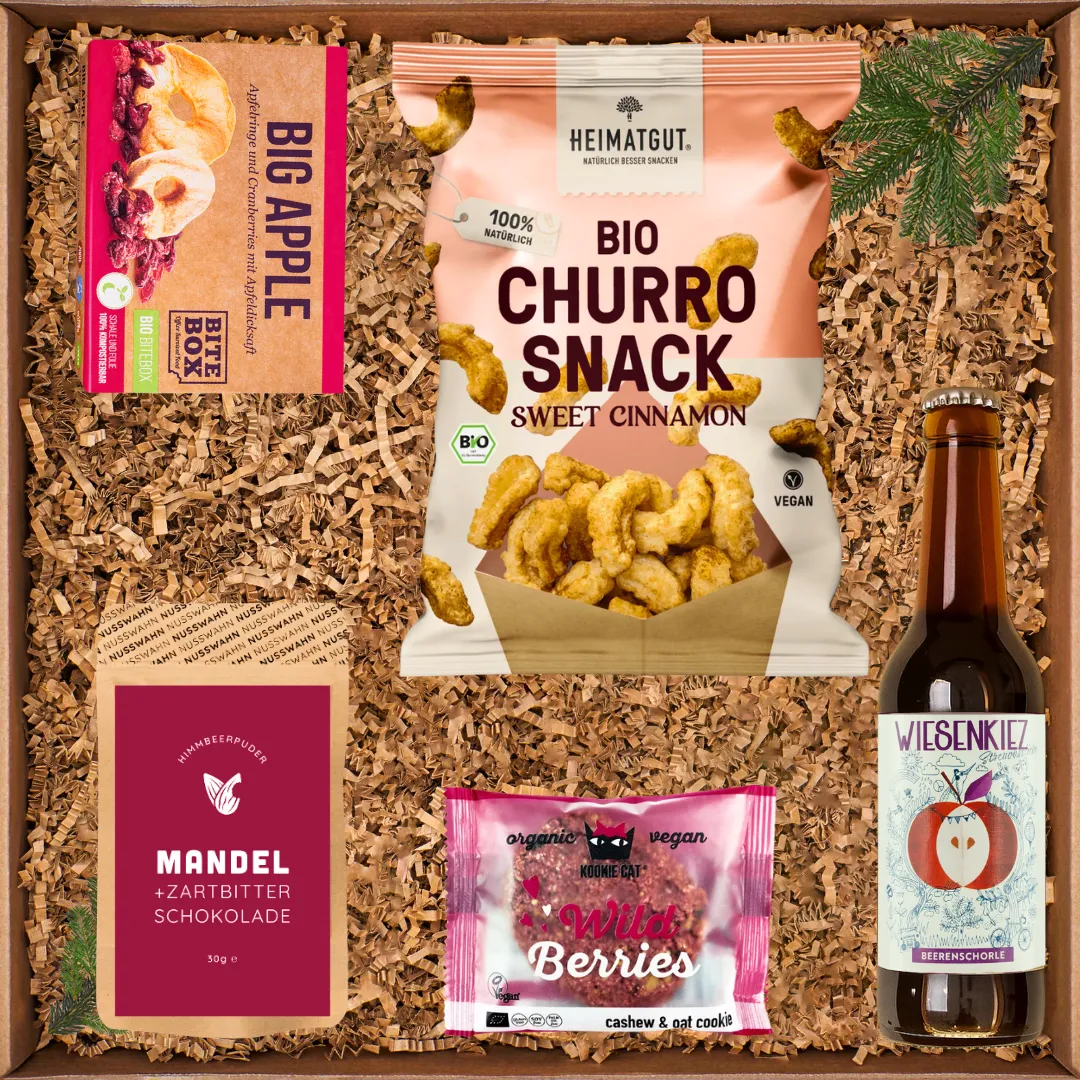 Wir bieten eine große Auswahl an Geschenkideen: von festlichen Weihnachtspräsenten für Mitarbeiter:innen über nachhaltige Snackboxen bis hin zu kreativen Kundengeschenken zu Weihnachten. Jede Geschenkbox ist so einzigartig wie dein Team – sorgfältig zusammengestellt, voller Genuss und immer mit dem Ziel, Freude zu bereiten.