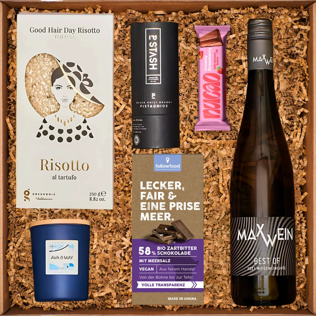 Unsere Geschenkboxen bestehen aus hochwertigen, innovativen Start-up-Produkten und werden liebevoll verpackt, um beim Öffnen den Wow-Effekt zu erzeugen. Schneller Versand – deutschlandweit nach Berlin, Hamburg, München und in jede andere Stadt – sowie ein benutzerfreundlicher Bestellprozess gehören zu unserem Serviceversprechen.